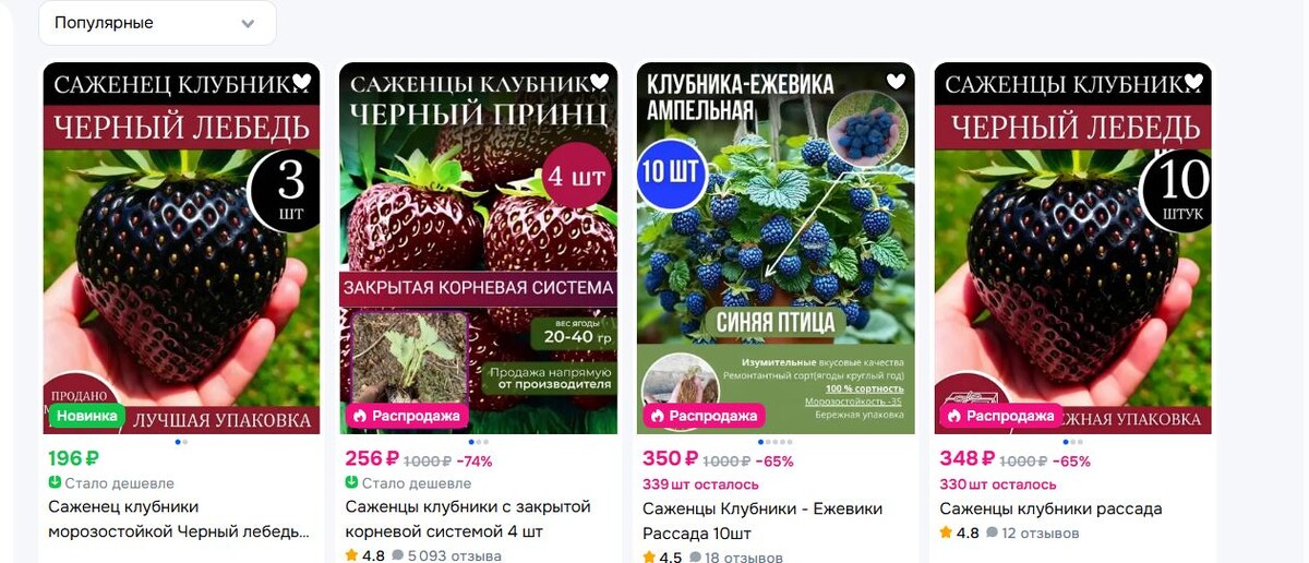 - Маркетинговый ход: Термин «чёрная клубника» часто используется как яркий рекламный приём для привлечения внимания к необычным, редким или новым сортам с очень тёмной окраской .