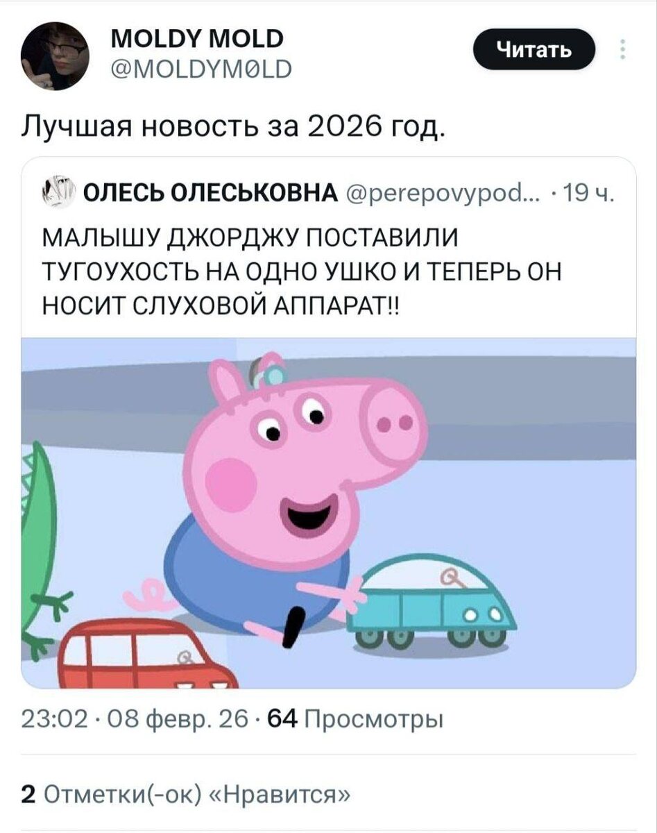Джордж из мультфильма «Свинка Пеппа» впервые за два десятка лет смог произнести имя своей сестры благодаря слуховому устройству