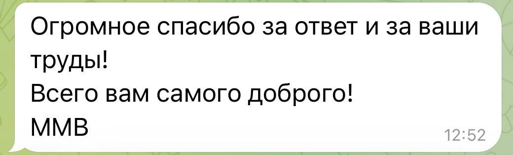 ✔️ Я тут буквально ору, как говорят подростки. Пишет девушка: «Где мои 500 бонусных баллов за отзыв на тренинг «Сквозняк январского космоса»? А нету! Нет у меня такого тренинга! Это она кому-то другому писала, ошиблась. А самое главное – у меня НЕТ практики покупать отзывы учеников и клиентов за деньги. Внимание! Все отзывы, которые вы видите в этой ленте – исключительно по любви и от души. Чего и всем желаю. Публикую не часто, чтобы не задалбывать подписчиков. Имена сокращаю до инициалов – ради приватности. Эти отзывы по итогам личного прогноза "КЛЮЧИ. 2026" (https://www.kluchi.astrogift.ru/) 🗝