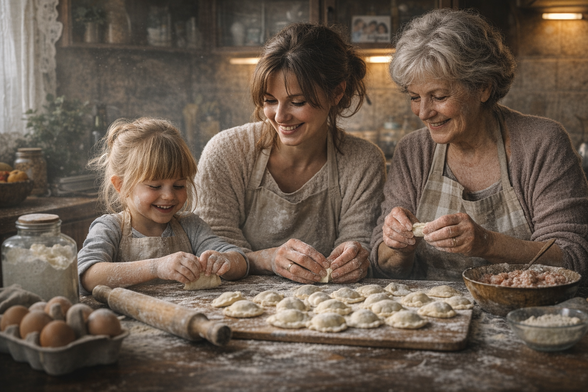 А на холодильнике висит та самая фотография — три поколения хозяек, все в муке, все счастливые.