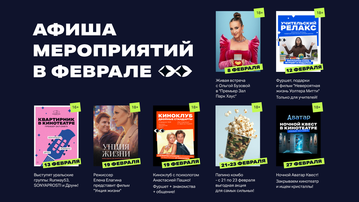 И это ещё не все события февраля в сети кинотеатров «Премьер Зал». Следите за обновлением публикации или новостями на сайте, а ещё лучше — в приложении!