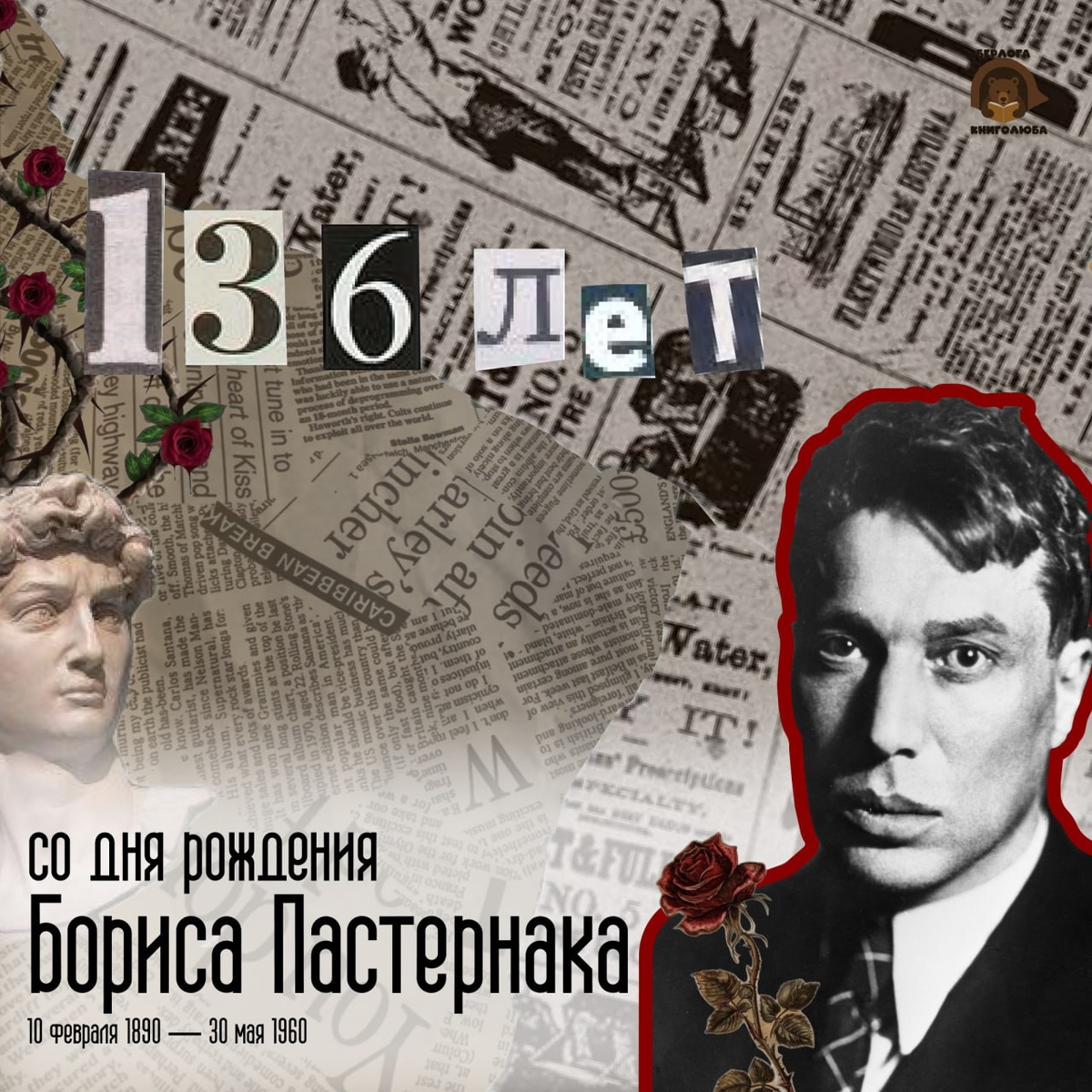 🤩 10 февраля 1890 года родился русский и советский поэт, писатель, переводчик Борис Пастернак. Борис Пастернак родился и вырос в атмосфере искусства: его отец — художник, мать — пианистка. Дом был открыт для ярчайших умов эпохи: здесь бывали Толстой, Скрябин, Серов. Этот воздух творчества и стал его университетом. В молодости он написал сонату и две прелюдии для фортепиано, затем начал писать стихи и заниматься переводом. За свое главное произведение — роман «Доктор Живаго» — в 1958 году он был номинирован на Нобелевскую премию по литературе, но отказался под влиянием советских властей. Также сегодня отмечается День памяти Александра Сергеевича Пушкина. Дата связана с кончиной поэта в 1837 году после дуэли с Жоржем Дантесом. День памяти не является официальным праздником, но ежегодно отмечается в нашей стране. #БерлогаКниголюба