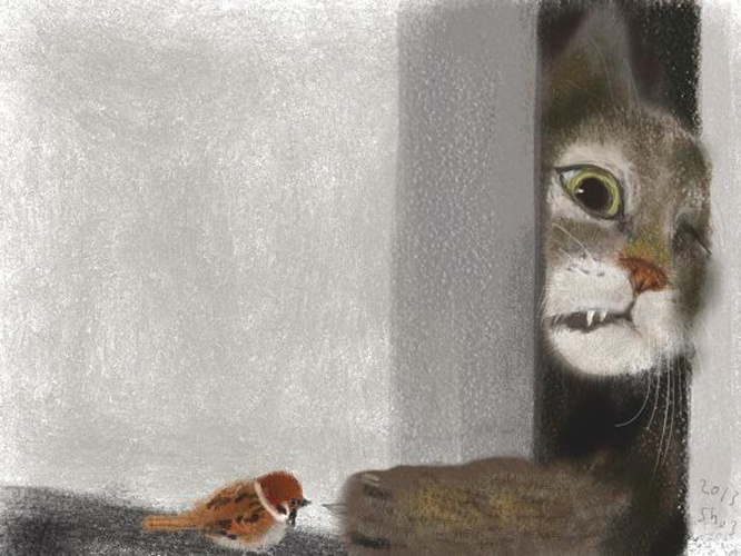 Шозо Озаки (尾崎 昭三) — современный японский художник, чьи кошки балансируют между эстетикой традиционной живописи и цифровым модернизмом. Его работы не стремятся к точной передаче формы — важнее уловить «дух» момента, ту мимолётную тишину, в которой растворяется суета. В мягких линиях и приглушённых тонах рождается ощущение ясасиса (優しさ) — нежности и мягкости, словно мир на секунду становится безопасным и доверчивым. Не случайно его картины называют «терапевтическим искусством». Рыжий котёнок, спящий на книгах, или полосатые малыши в гамаке — это не просто милые сцены, а визуальные хайку, короткие мгновения покоя и гармонии. В них нет лишних деталей: только свет, тишина и ощущение, что жизнь сама по себе может быть доброй😺✨