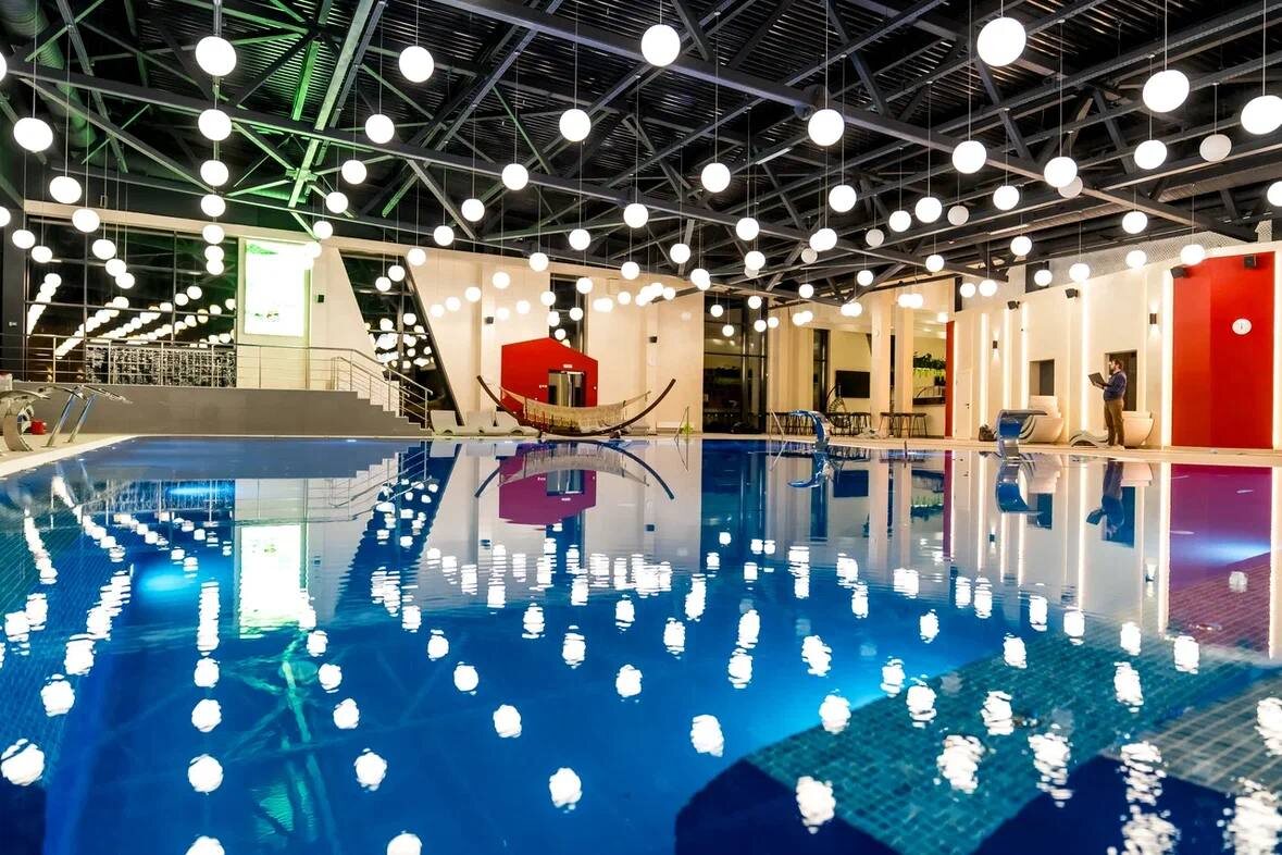 ». Это более 6 000 кв. м терм, рассчитанных на прием до 4 000 гостей в сутки. В комплексе — четыре бассейна общей площадью свыше 1 000 кв. м, включая большой открытый подогреваемый бассейн, инфинити-чашу с видом на курорт и детскую зону с водными аттракционами. Проект дополняют 13 бань и саун — от классических русских парных до хаммамов и сауны впечатлений, wellness-зоны с грязевыми аппликациями, залы для йоги и пилатеса. Рядом расположен спа-отель на 40 номеров, соединённый с термами тёплым переходом — важная деталь для круглогодичного формата.
