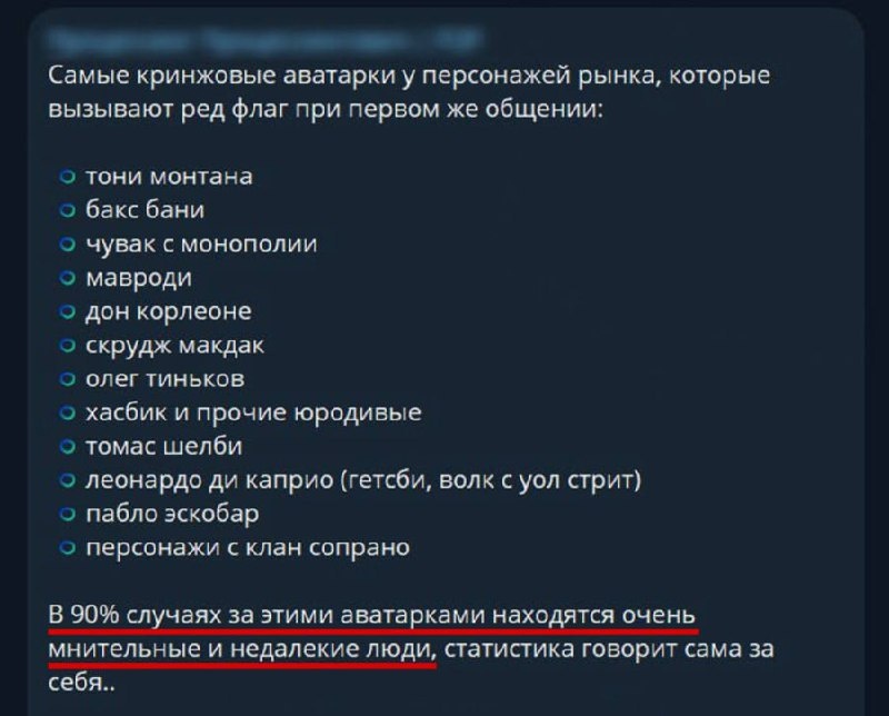 Чистый концентрат жизненного опыта и красных флагов в одном списке. Передоз жизы. Подробнее: https://hard-tm.su/threads/145884/ 🕹HARD-TM — Подписаться