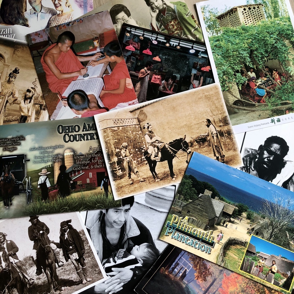 Важно уточнить, что все открытки — подписаны, прошли почту, и их тема совпадает со страной отправления: то есть на открытке, например, китайские монахи — и отправлена она из Китая китайским посткроссерром. Всё аутентично.
