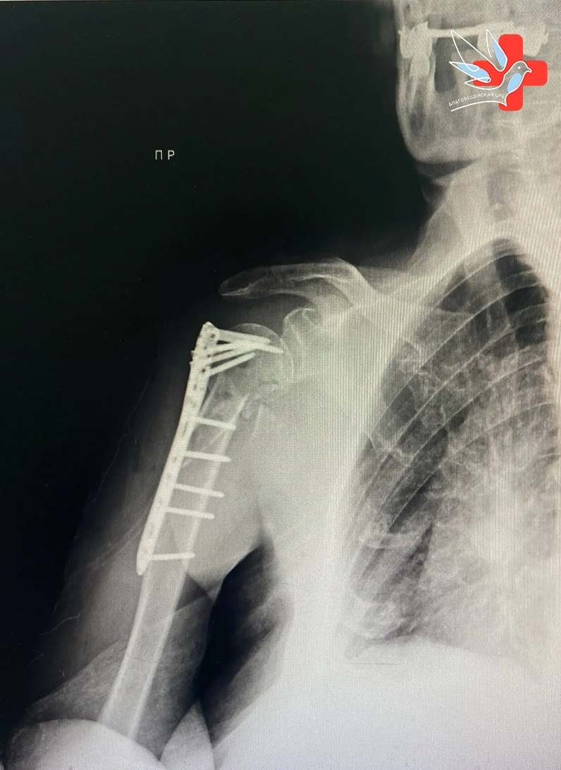 Благодаря опыту врача и слаженной работе всей медицинской команды, пациентка быстро восстановилась В травматологическое отделение Благовещенской центральной районной больницы была экстренно доставлена 78-летняя женщина после падения дома. Пострадавшая получила серьёзную травму — перелом плечевой кости, что требовало немедленного оперативного вмешательства. Врач-травматолог Сараж Измайлов успешно провёл сложную операцию — остеосинтез, используя титановую пластину. Благодаря его опыту и слаженной работе всей медицинской команды, пациентка быстро восстановилась и уже выписана домой с положительной динамикой.