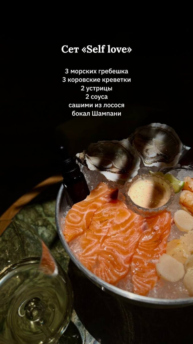 ❤️ 14 февраля Бронируем столы для одного! Празднуйте любовь к себе и закажите сет с бокалом шампани для одного: гребешки, сашими из лосося, устрицы, креветки и пара соусов. А пока вы наслаждаетесь, мы изготовим для вас фирменный брелок - плакетка Charlie с вашей гравировкой. P.S. Плакетки будем отдавать на гравировку каждый час. Ждём в гости 😉