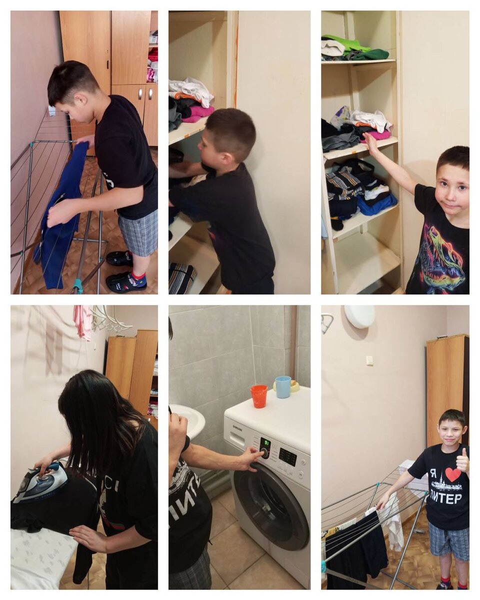пользоваться стиральной машинкой. Учились развешивать бельё с заботой о вещах. Приводили в порядок свою одежду, развивая внимательность к деталям и инициативность: то самое качество, которое заставляет не ждать указаний, а самому видеть, что нужн