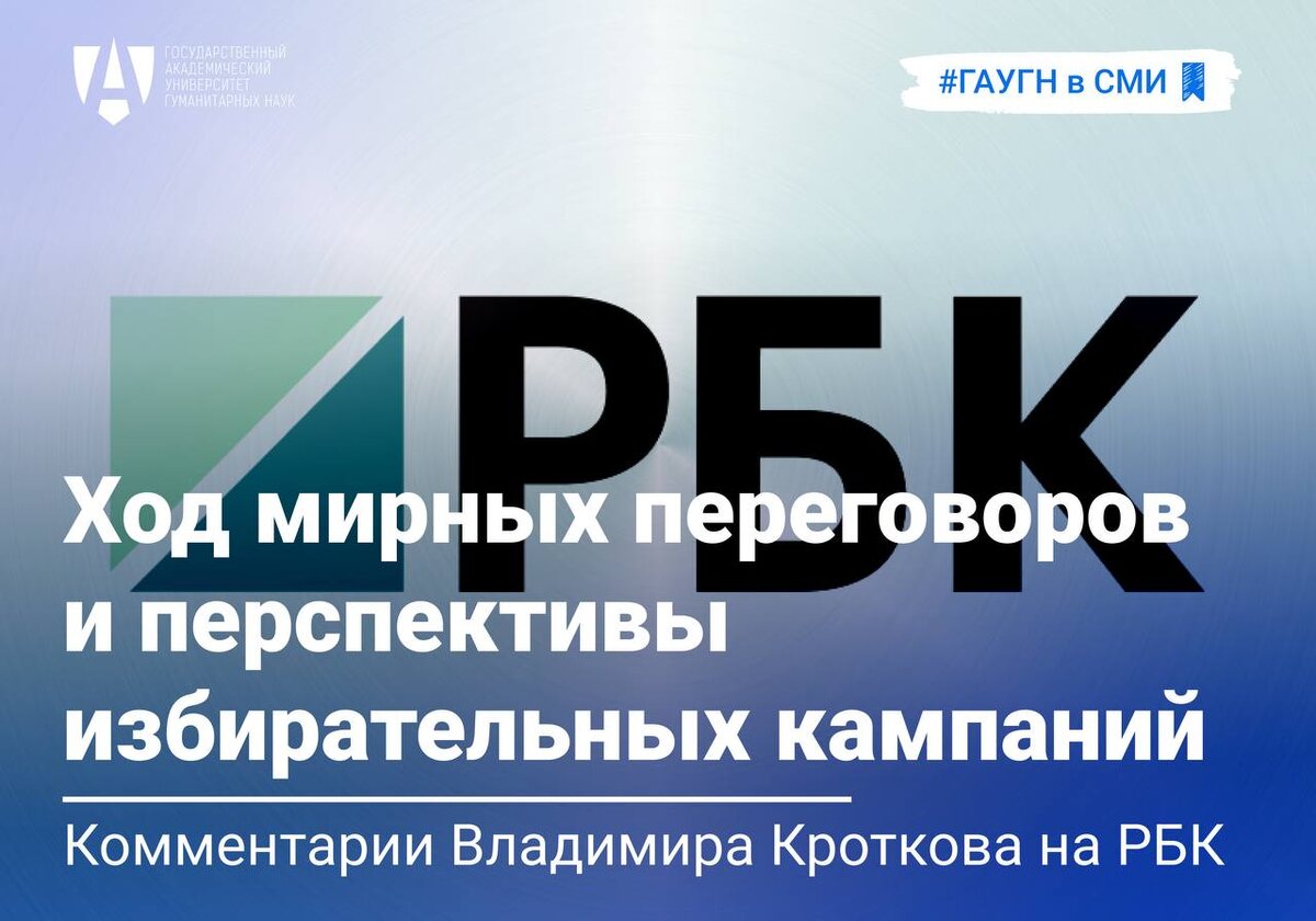 🗣️ Профессор Факультета политологии ГАУГН Владимир Кротков в ряде эфиров телеканала и радио РБК дал экспертные комментарии по актуальным вопросам международной и внутренней политической повестки. В эфирах телеканала РБК профессор обратил внимание на существенные риски, заложенные в обсуждаемой формуле мирного урегулирования, предполагающей проведение выборов президента Украины и референдума. 📌 В ходе выступления на радио РБК профессор также отметил, что идея проведения референдума на Украине в текущих условиях выглядит нереалистичной. 🇷🇺 Отдельной темой обсуждения в эфире радио РБК стали выборы в Государственную Думу Российской Федерации 2026 года. Эксперт обозначил ряд интригующих вопросов, которые могут повлиять на общественное внимание к выборам, — прежде всего, кто займет второе место и каким будет уровень явки избирателей. #политологиГАУГН #простРАНство_ГАУГН #gaugn_expert #ГАУГН_в_СМИ 👻 МАХ 📲 ВК 📺 RT 📝 ДЗЕН