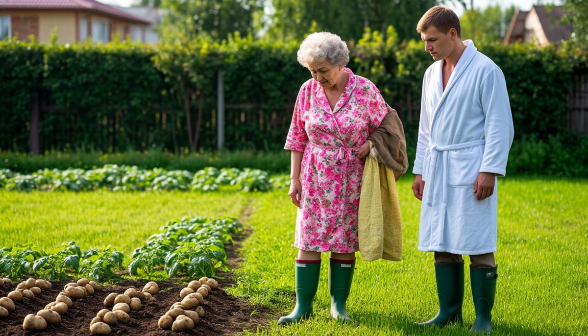 Алиса замерла на пороге дома. Она смотрела на эту картину: её дизайнерские миксбордеры, её штамбовые розы, её японский клён, а перед ними — грядки, парник и картофельное поле. Больше не было сил сдерживаться.