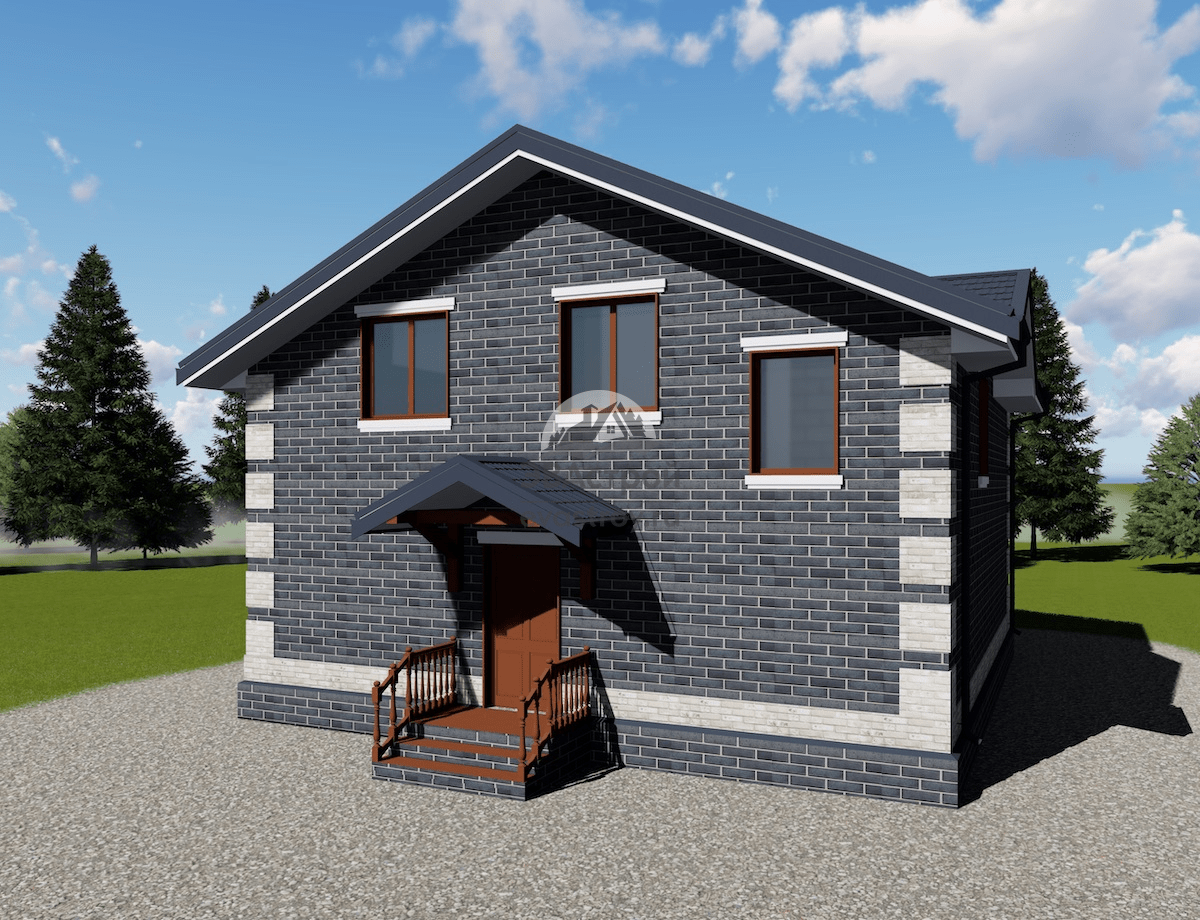 Номер проекта: 107-17 (П59) Разделы проекта: Архитектурный и Конструктивный разделы Узнать о проекте больше можно на сайте evastroy.ru или по телефону +7 (495) 175-30-40 Двухэтажный мансардный коттедж в модной отделке темным кирпичом. Проект располагает общей площадью 147 м2, что оптимально для семьи из трех-четырех человек, и габаритами 9.64 x 9.94 м. Состав помещений: 3 спальни, гостиная, кухня, кабинет, санузел, душевая, бойлерная, тамбур, холлы. Ценность данного предложения — в сочетании таких факторов, как: оригинальный экстерьер; практичность и функциональность; простая конструкция; быстрое строительство из крупноформатных газобетонных блоков. На первом этаже — общие и технические комнаты; приватные часть вынесена наверх. Гостиная и кухня раздельные, тем не менее, между ними не капитальная стена, а перегородка, которую при желании легко убрать, создав общую дневную зону. На одной линии с кухней — душевая и бойлерная; в любом из этих помещений можно организовать зону постирочной.