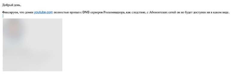 Эксклюзив: под шумок РКН, похоже, решил добить и YouTube — источники среди провайдеров говорят, что домен видеохостинга исчез из