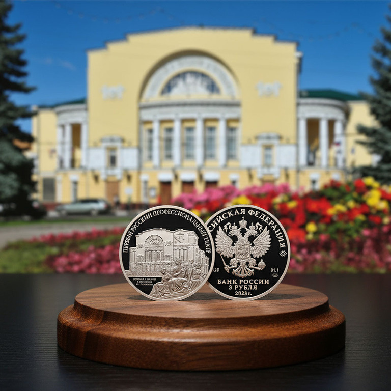 🎭 Российская монета "Первый русский профессиональный театр" 3 рубля серебро 2025 — памятная монета серии "Культура и Искусство