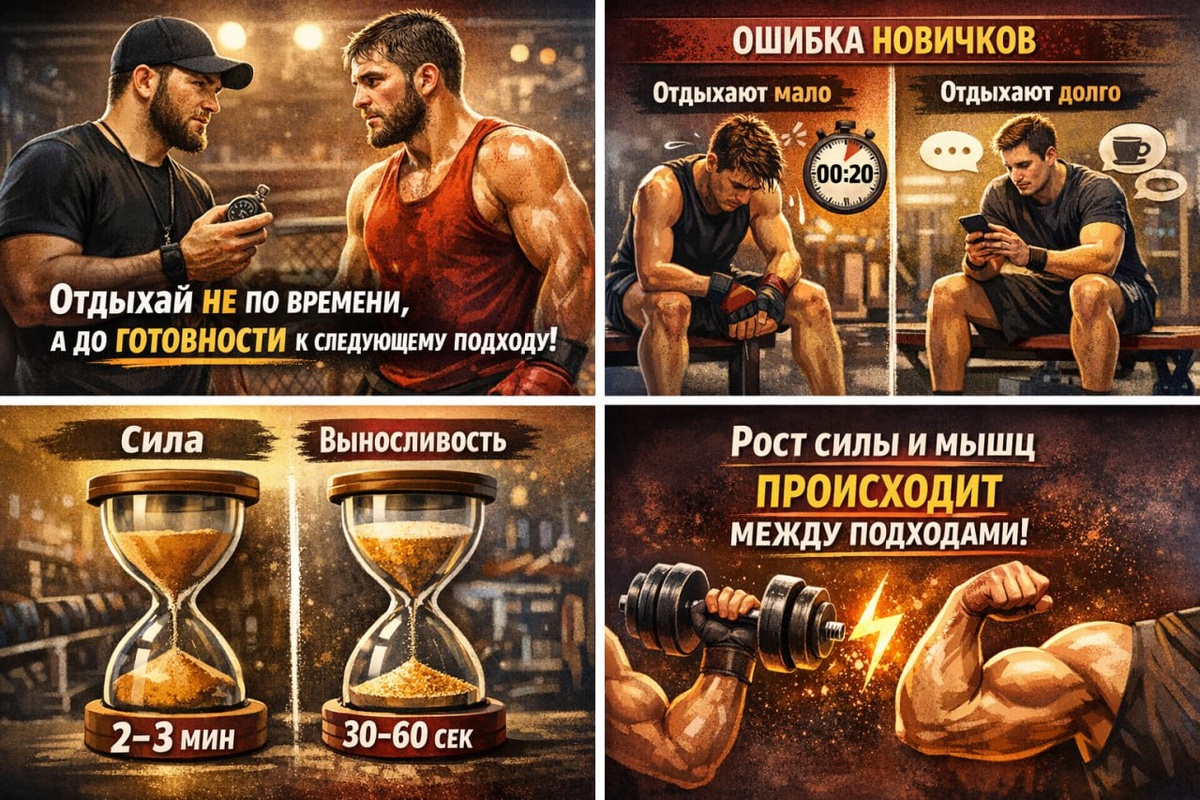Так и в зале. Цель отдыха — не «отбыть время», а полностью восстановить дыхание, пульс и, самое главное, психическую готовность, чтобы следующий подход был выполнен ИДЕАЛЬНО. С правильной техникой, с полной отдачей, с целевым весом.