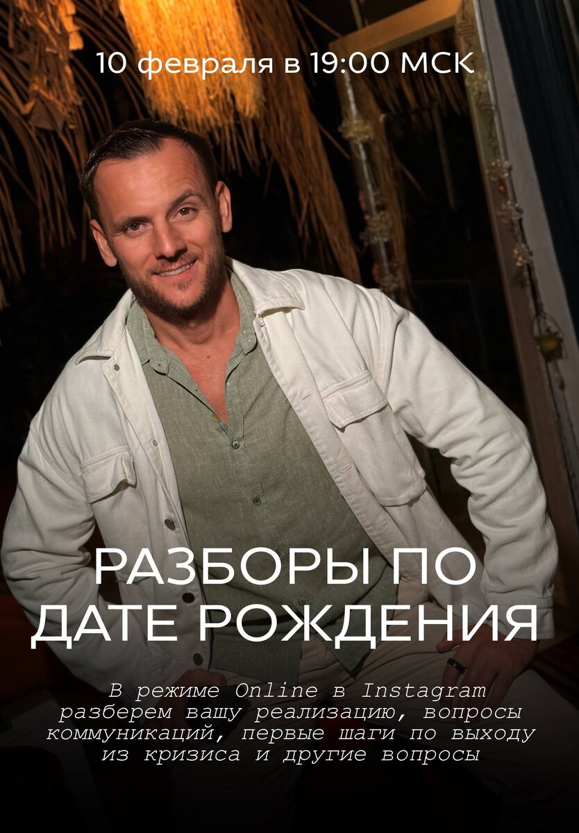 🚀 Друзья, вижу, что у вас много вопросов по самоорганизации, вашим компетенциям и реализации! Поэтому 10 февраля [СЕГОДНЯ] в 19:00 МСК я проведу разборы по дате рождения! Подключаетесь к эфиру и задавайте интересующие вопросы! 📣 В режиме Online в Instagram разберем вашу реализацию, вопросы коммуникаций, первые шаги по выходу из кризиса и другие вопросы 🔗 instagram.com/sergei_teplykh/ 👉 Присоединитесь к нам сегодня?