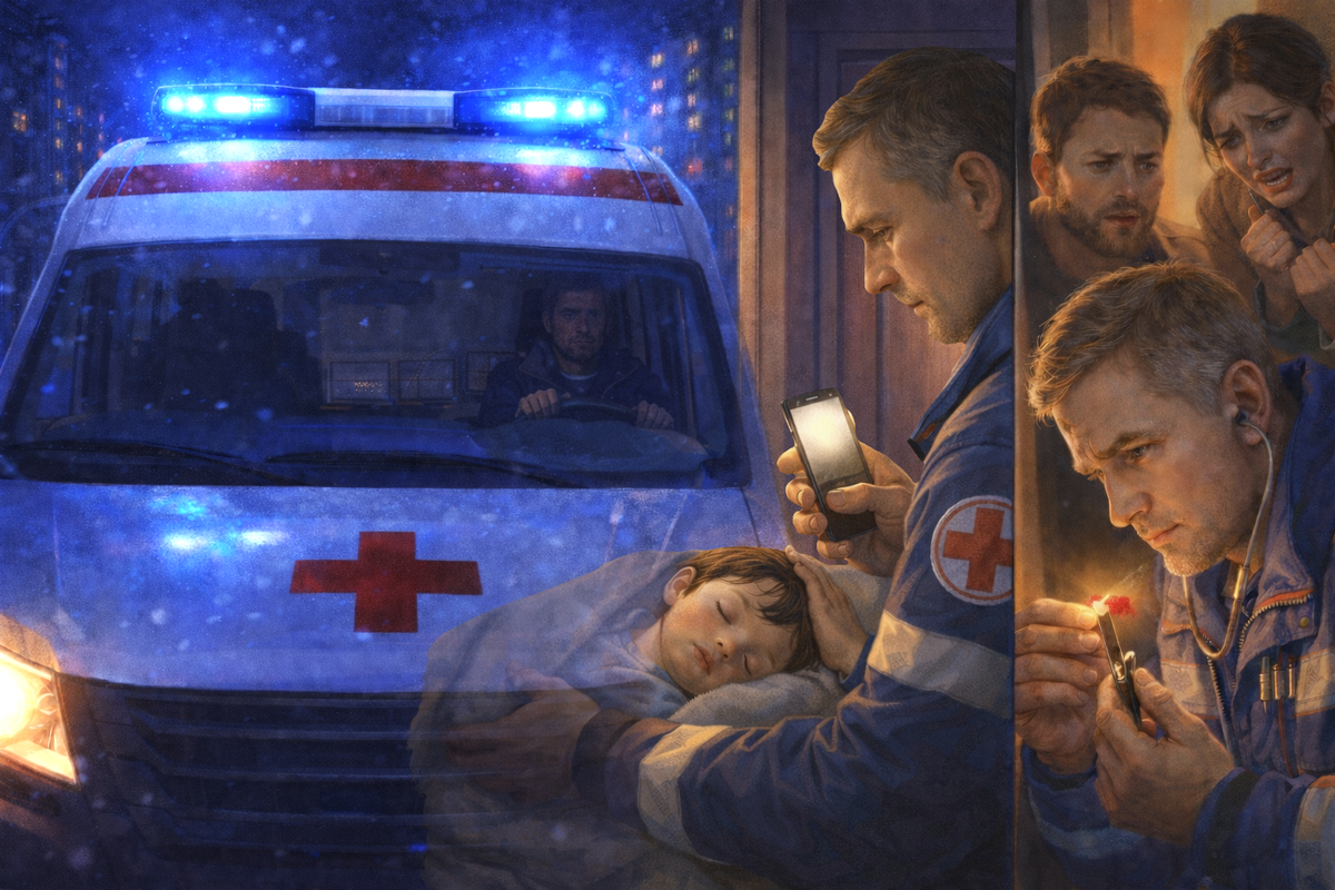 Середина января, три часа ночи, на дворе метель. Водитель ведет машину скорой через заснеженный город – вызов на другой конец района. Доктор Витя и его фельдшер Серега вновь летят на детский вызов. В этот раз с экстренным поводом: кровь в кале у полуторагодовалого ребенка. На пороге квартиры встречают взвинченные родители. Отец сует переполненный детский горшок Вите прямо под нос: – Вот, смотрите! Кровь! Нам срочно нужно в больницу! Мать что-то кричит про интернет и внутреннее кровотечение. Врач невозмутим. Серега тоже. Оба молча проходят в квартиру – скандалить нет сил после пятнадцати выполненных до этого вызовов. Малыш спит спокойно. Дыхание ровное, температура нормальная, живот мягкий. Серега осматривает горшок – действительно красные включения. Достает пинцетом фрагмент, рассматривает при свете телефона. Консистенция волокнистая, запаха крови нет. Витя спрашивает: – Что ребенок ел вчера? Родители возмущаются, но вспоминают: на ужин давали сырой болгарский перец. – Это непереваренн