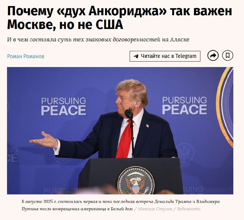 Не первый день по отечественным изданиям ведется обсуждение, основанное на интервью Сергея Лаврова, которое обрастает различными анонимными подробностями об устных договоренностях, достигнутых в Анкоридже. Весь смысл которых в том, что в августе 2025 года на Аляске Россия пошла на уступки США по Украине, включая вопрос территорий и численности армии, а коварные американцы до сих пор в ответ ничего хорошего нам не сделали. Западные издание уже в первые дни после встречи заявляли, что этими уступками являлся отказ России от установления контроля над Херсонской и Запорожской областью, в обмен на получение лишь Донбасса с последующей заморозкой ситуации по линии фронта. Однако, представители России эту информацию прямо не подтверждали, но и не опровергали, лишь изредка давая туманные намеки. Видимо, изначально была надежда, что эти устные обещания Трамп действительно начнет исполнять, а поэтому говорить ни о чем не надо. Но чем больше месяцев проходило, тем сильнее эта надежда угасала.