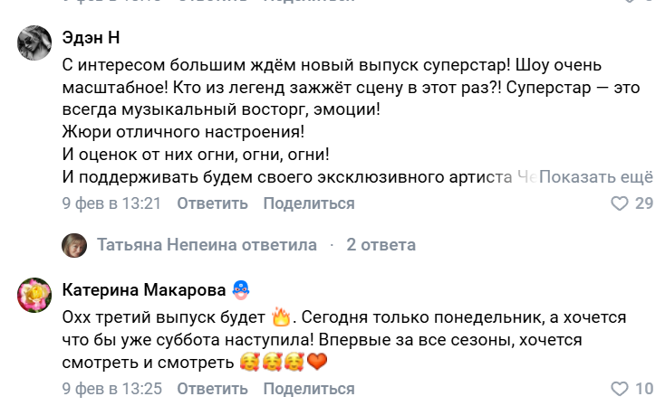 Новый сезон шоу «Суперстар! Битва сезонов» на НТВ объединил победителей и самых ярких участников прошлых лет проекта. Впервые в истории «Суперстара» на сцену вышли артисты из всех пяти сезонов — те, кто уже доказал свой статус и теперь борется за звание лучшего из лучших. Проект стартовал 31 января 2026 года и сразу задал высокий уровень конкуренции, эмоционального накала и сценических экспериментов . Ведущие сезона — Вадим Такменёв и Наташа Королёва.