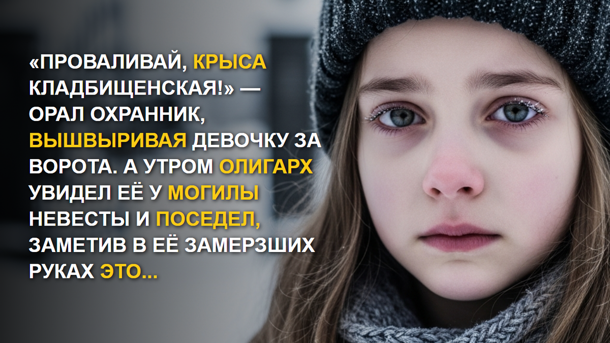 «Проваливай, крыса кладбищенская!» — орал охранник, вышвыривая девочку за ворота. А утром олигарх увидел её у могилы невесты и поседел, заметив в её замерзших руках ЭТО…