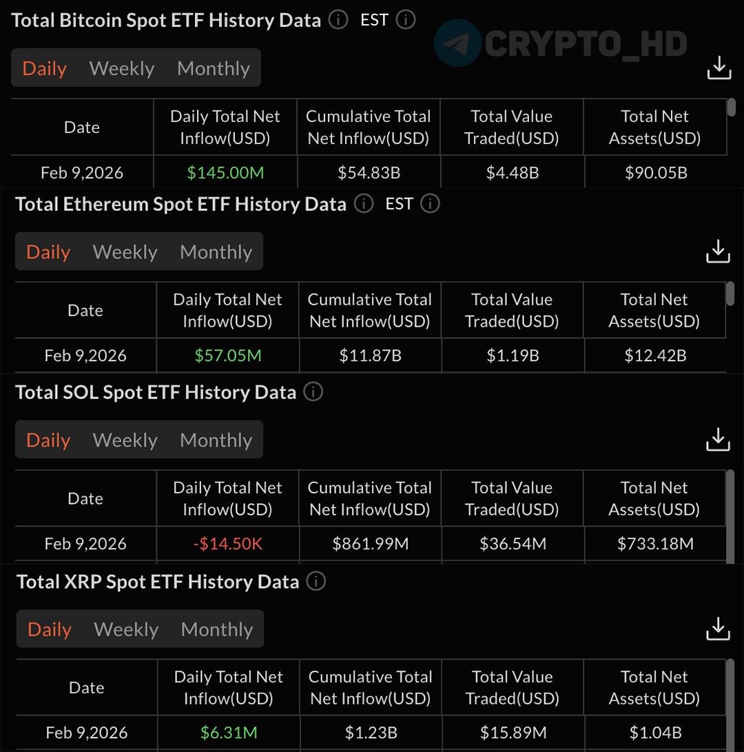 🤔 SV: Финпотоки крипто-ETF за вчерашний день.
