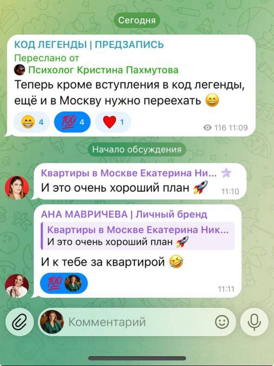Сегодня изучала планы Собянина по развитию Москвы, если кратко: — Удвоить протяженность московского метро — 34 станции построят до конца 2032 года. Появится линия метро в Сколково; — До 2030 года в Москве планируется построить около 300 объектов спорта; — До 2032-го планируется строить около 100 км дорог ежегодно; — Создание современного каркаса стационарной помощи завершится до 2030-го; — Москва вышла на планку 80 лет по ожидаемой продолжительности жизни. И тут переезд в Москву может стать очень классной идеей 😉 P.S. скрин из чата моего любимого сообщества #москвавсехмосквее