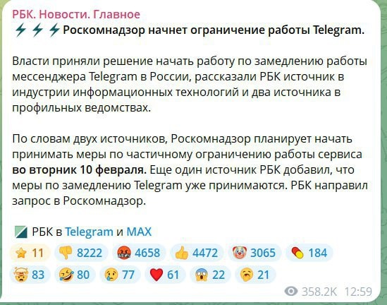 Telegram уже в ряде регионов России без VPN невозможно запускать. Уже достаточно авторитетные СМИ стали сообщать, что Telegram начали намеренно замедлять. Реакцию пользователей вы можете увидеть под постом. Новости Мира Сальное Дифлопэ