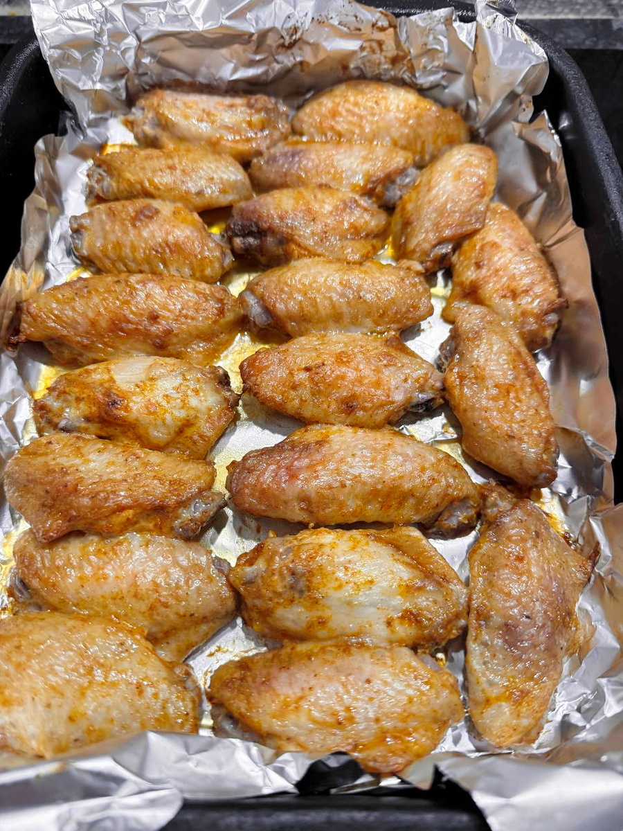 В вашем может быть вообще любое мясо – и говядина, и свинина, и баранина, и оленина. Я приготовил с локтями, потому что отправил их мариноваться пять дней назад, чтобы запечь в духовке, но в итоге передумал. Потому что внезапно потребовалось приготовить ужин, а запеченные локти на ужин безо всего, на мой взгляд, такое себе. Маринад – с любыми вашими любимыми травами и специями. В моем случае я добавляю 1% соли от общей массы крыльев, а уже потом травы и специи без соли. Потом вакуумирую и отправляю на 0+3 градуса на несколько дней, чтобы все локти просолились и пропитались ароматами добавок. А дальше все очень просто: · Запечь на 190 градусах крылья, чтобы вытопить жир из кожи · А потом запечь л