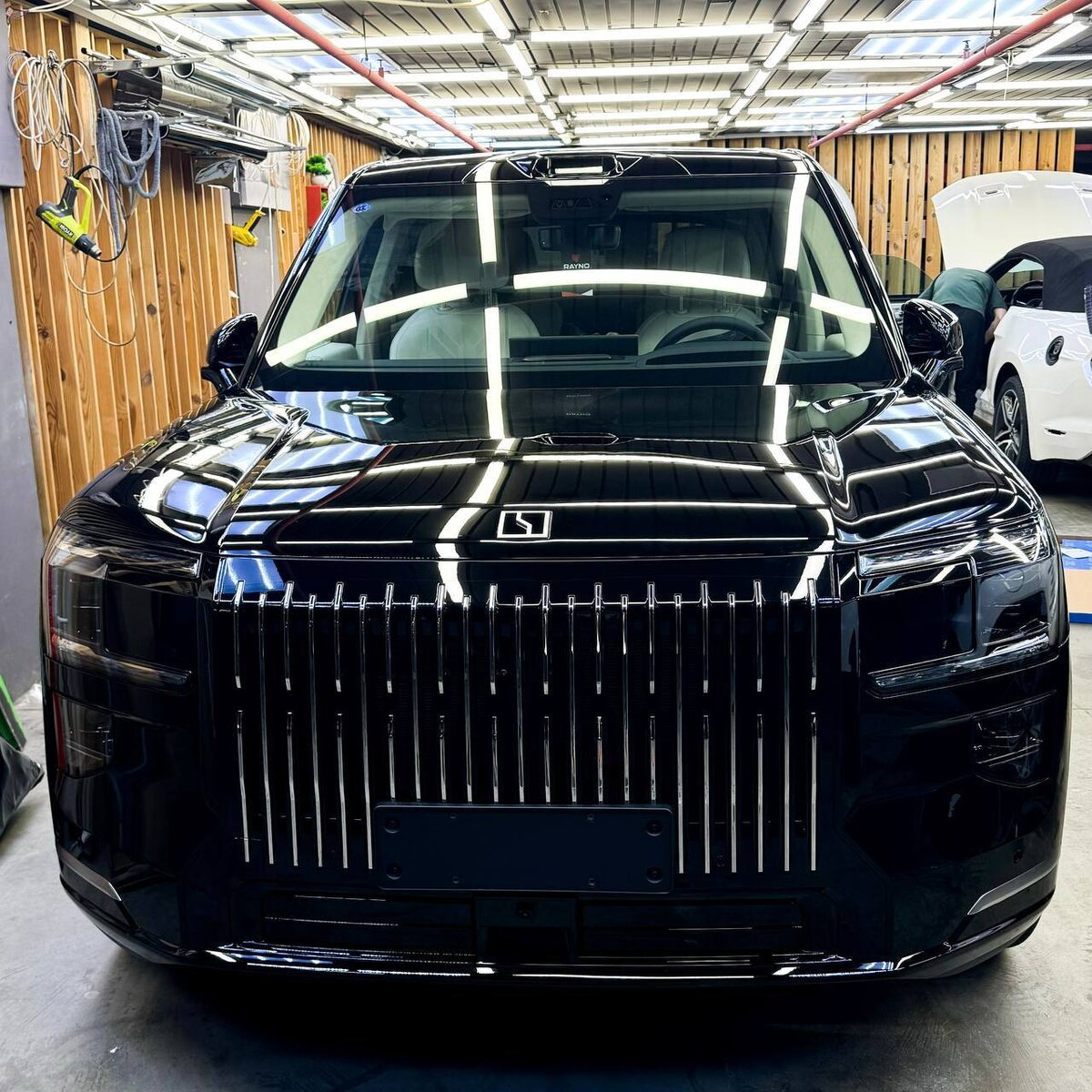 Оклейка Zeekr 009: премиальная защита электрического минивэна Zeekr 009 — флагманский электрический минивэн от китайского премиум-бренда Geely. Этот автомобиль только прибыл из Китая и сразу отправился в студию LLumar.PRO для комплексной защиты и подготовки к российским дорогам. Владелец выбрал максимальный уровень защиты с использованием топовых материалов. Для защиты кузова использована полиуретановая плёнка Spektroll Premium толщиной 210 микрон — один из самых надёжных антигравийных материалов на рынке. Эта плёнка обеспечивает: Оклеен полностью весь кузов, включая крышу — комплексная защита всех видимых поверхностей от сколов, царапин, птичьего помёта и дорожных реагентов. После транспортировки из Китая на кузове остались небольшие царапины от транспортировочных тросов. По желанию клиента мы провели лёгкую локальную полировку проблемных зон. Важный момент: