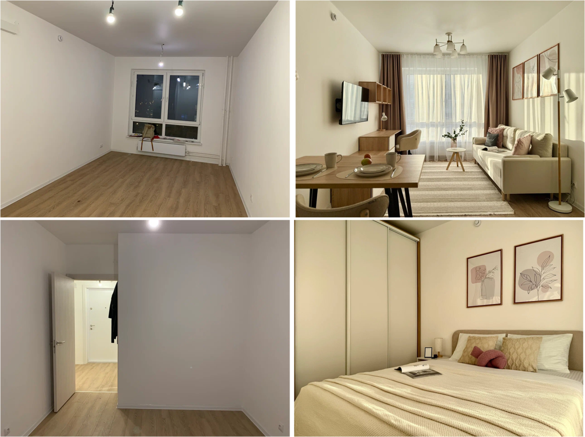 Эта квартира от ПИК могла быть «как у всех»: белые стены, серый диван, чисто, аккуратно и… пусто. Бело-серые интерьеры, которые вошли в моду, благодаря Икеа и годами считались стильным и безопасным решением, сегодня всё чаще пролистывают. Их стало слишком много, и это перестало работать. Рынок изменился, и в Pinterest сейчас совсем другие тренды. Арендаторы всё реже выбирают нейтральные интерьеры, и всё чаще ищут что-то теплое, уютное и домашнее. К нам обратилась собственница евро-2 от ПИК в Отрадном с запросом на меблировку. Девушка уже передала две другие квартиры в управление Смарент, была довольно результатом и полностью доверяла нашему опыту. Сделать квартиру в стандартной бело-серой палитре довольно просто и недорого: на маркетплейсах полно производителей такой мебели, её легко комбинировать, не нужно думать о сочетаемости цветов и стиля. Именно поэтому так стали делать все. Но именно поэтому собственник такой арендной квартиры автоматически попадает в зону конкуренции с десятка