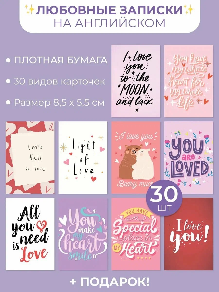 Прелестные мини-открытки с признаниями для любимого или любимой, 30 шт.
