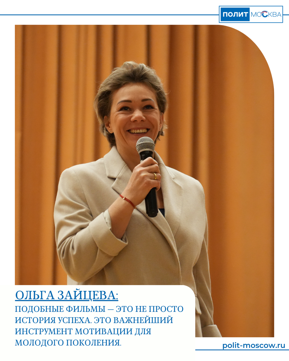 ️Презентацию фильма и встречу со студентами провела координатор федерального партийного проекта «Детский спорт» в г. Москве, двукратная олимпийская чемпионка, депутат Мосгордумы Ольга Зайцева. С приветственным словом к собравшимся также обратилась ректор МГУСиТа Наталья Масягина.