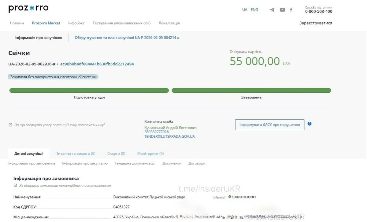 То есть одну свечу купили за 550 грн. В то же время в других магазинах такая же стоит 135 грн. Поставить товары должны до конца 2026 года, а финансировать такую покупку будут из местного бюджета.