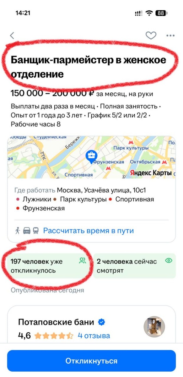 Вы видели, сколько откликов на вакансию программиста? А теперь сравните с востребованностью банщика в женское отделение! Всего 197