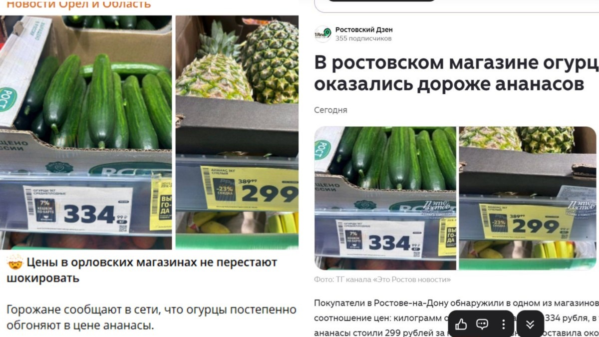Орловцев пугают «заоблачной» ценой на огурцы, обгоняющей цены на ананасы