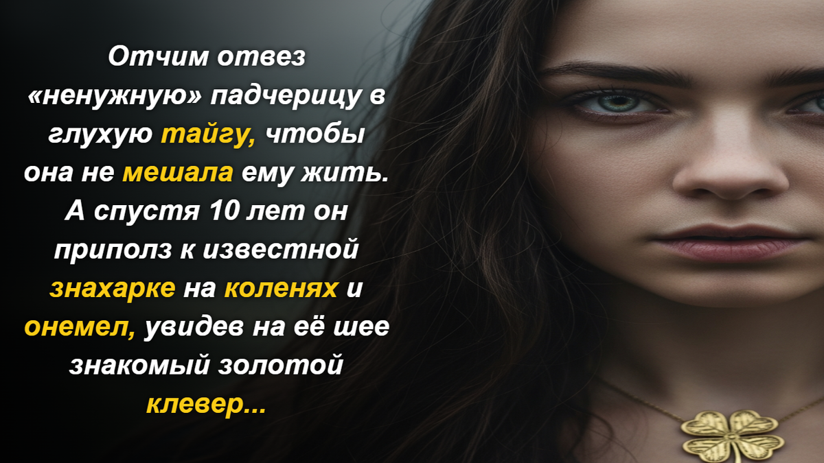 Отчим отвез «ненужную» падчерицу в глухую тайгу, чтобы она не мешала ему жить. А спустя 10 лет он приполз к известной знахарке на коленях и онемел, увидев на её шее знакомый золотой клевер