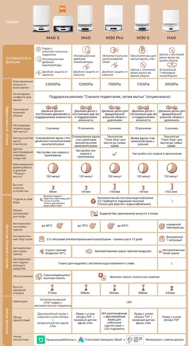 Хорошая сводная табличка по роботам Xiaomi