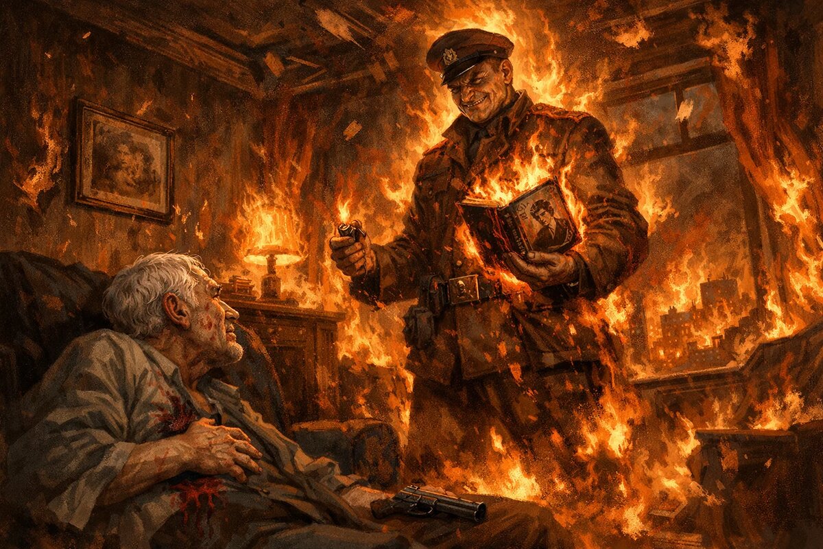 ПОЖАРЫ Люди метались по городу, как птицы перед грозой. Улицы утопали в дыму, а из чёрных окон то тут, то там вырывались оранжевые языки пламени. Все передающие устройства захлёбывались сообщениями о подходе вражеской армии и тяжёлых боях на передовой. Огонь охватил город. Седой старик взбежал по лестнице подъезда, дрожащей рукой отпер дверь и проскользнул в квартиру. Миновав прихожую, он зашёл в сумрачную гостиную и осмотрелся. Он искал место, куда спрятать томик, который бережно прижимал руками к груди. – Так и знал, что вы сюда это принесёте, – раздался знакомый голос. Старик резко обернулся. У окна на фоне огненного зарева в кресле сидел майор. Старик много раз видел это широкое несимметричное лицо с косыми навыкате глазами на выступлениях, во время которых тот зажигательно выкрикивал с трибуны обличительные речи. Ещё старик подумал о свойстве власти придавать лоск самым ничтожным и гадким людишкам. Он помнил этого майора с тех пор, когда тот ещё не был майором. Как он в грязной од