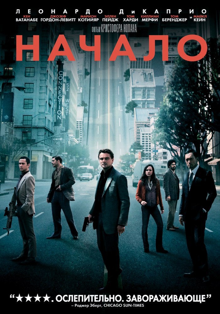 Потрясающая картина Кристофера Нолана. Блестящий актерский состав : Леонардо Ди Каприо , Том Харди , Келлиан Мёрфи , Марион Котийяр , Кэн Ватанабэ и другие.