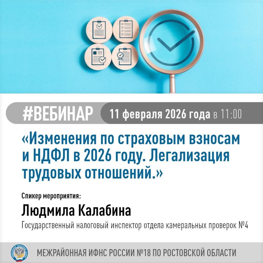 Приглашаем налогоплательщиков принять участие в вебинаре по теме «Изменения по страховым взносам и НДФЛ в 2026 году. Легализация трудовых отношений». В программе вебинара: • Ограничения на применение субъектами МСП пониженных тарифов по страховым взносам. • Порядок исчисления и уплаты страховых взносов с зарплаты руководителей коммерческих организаций. • Как налоговым агентам с 1 сентября 2026 года заполнить и подать досрочные уведомления об исчисленном НДФЛ. • Легализация трудовых отношений, мероприятия по снижению уровня неформальной занятости населения. Вебинар пройдет 11 февраля 2026 года в 11:00. Для подключения к трансляции необходимо перейти по ссылке: clck.ru/3QyRgp Приглашаем налогоплательщиков принять участие в семинаре по теме «Актуальные вопросы изменения налогового законодательства в 2026 году». В программе семинара: • Основные изменения в законодательстве в 2026 году по НДС. • АУСН и УСН в 2026 году. Порядок установления лимитов дохода налогоплательщиков УСН для уплаты НД