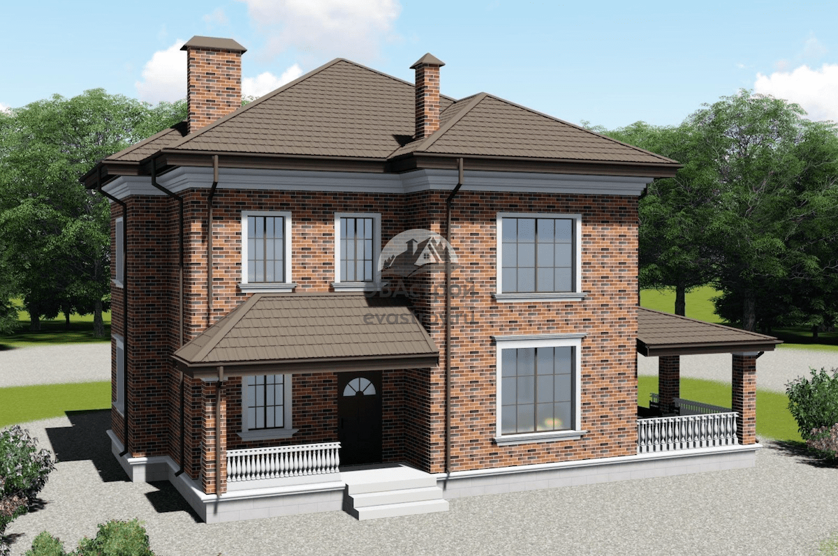 Номер проекта: 107-26 (П74) Разделы проекта: Архитектурный и Конструктивный разделы Узнать о проекте больше можно на сайте evastroy.ru или по телефону +7 (495) 175-30-40 Красивый аккуратный коттедж в европейском стиле, в двух этажах. Здание выглядит компактным, несмотря на достаточную площадь — 222 м2 и габариты 14.5 x 12.2 м. Проживать в нем может семья из четырех-шести человек. Состав помещений: 3 спальни, гостиная, кухня, гостевая, 3 санузла, 2 гардеробные, техпомещение, тамбур, холлы. Для отдыха предусмотрена крытая терраса. Преимущества проекта: в этом доме будет удобно не только хозяевам, но и гостям, для которых спроектирована отдельная спальня и санузел. Хозяйки, мечтающие о просторной кухне, будут рады получить в свое распоряжение 20 м2, большое окно и выход на террасу; дом вместительный, отсутствуют тесные неудобные помещения; санузлы спроектированы на каждом этаже. На первом уровне дома расположена гостиная с угловым камином, кухня, гостевая спальня. Хозяйственные службы (та