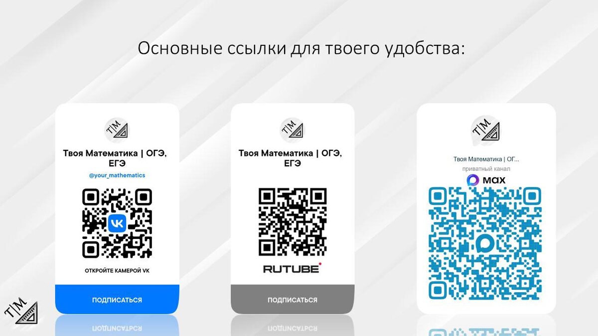 : 1) Мы в VK https://vk.com/your_mathematics 2) Мы на Rutube https://rutube.ru/channel/31747062/ 3) Мы на YouTube https://www.youtube.com/@your_mathematics 4) Мы в Telegram https://dzen.ru/id/64c3d24c7a7516404636a6a3 5) Мы на Яндекс Dzen https://dzen.ru/your_mathematics 6) Мы на Платформе https://plvideo.ru/@your_mathematics 7) Мы в Одноклассниках https://ok.ru/group/70000024697784 8) Мы в MAX https://max.ru/join/8Fsla5-XXhz2cgUleYCmBJbcDgZqwFp2tgdqhz72BsY 📌ЗАПИСЬ НА КОНСУЛЬТАЦИЮ: 1.можно осуществить по номеру телефона (звонок, MAX, Telegram): 👉🏻 +79264540340 2.можно осуществить здесь через личные сообщения в VK: 👉🏻 https://vk.com/your_mathematics_group 3.оставь заявку в Google-форм: 👉🏻https://forms.gle/dkCPZB6KM6yaUtMKA 4. можно осуществить здесь через личные сообщения сообщества в VK: 👉🏻 https://vk.com/your_mathematics Твой вектор в мир математики! 📐 #школа #математика #алгебра #геометрия #твояматематика #огэпоматематике #огэ #егэпоматематике #егэ