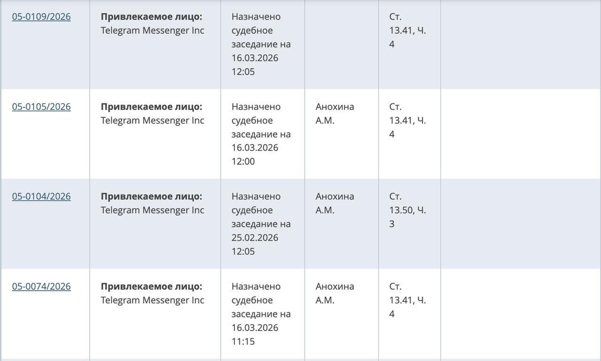 Рубрика: Политика В отношении платформы Telegram составлены семь административных протоколов за отказ удалить запрещенный контент. Как следует из данных московских судов, протоколы оформлены по ч. 4 ст. 13.41 КоАП РФ, которая регулирует нарушения порядка ограничения доступа к информации. Рассмотрение дел назначено в Таганском районном суде Москвы. Первые два заседания состоятся 11 февраля, а оставшиеся пять — 16 марта. Отдельный протокол составлен по статье о неисполнении обязанностей владельца социальной сети, предусматривающей наказание за повторное административное правонарушение. Его рассмотрение запланировано на 25 февраля. Данные меры являются частью усиленного контроля за соблюдением законодательства в сфере информационной безопасности. Владельцы платформ обязаны оперативно удалять материалы, признанные запрещенными на территории РФ. #Telegram #КоАП #Таганский_суд #запрещенный_контент #информационная_безопасность ➡️ Читать на сайте ➡️ Подписаться на Телеграм