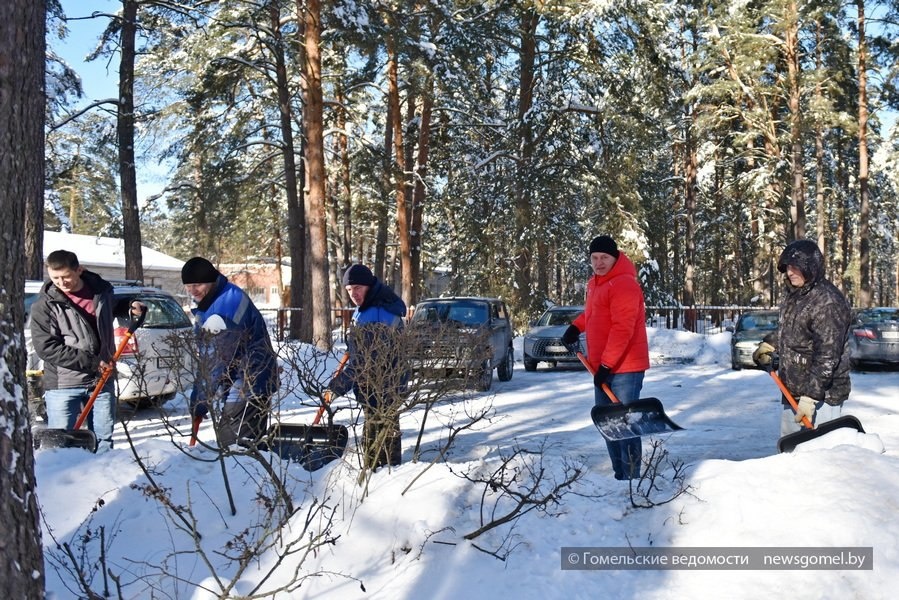 В Гомеле персонал больницы № 3 убирает снег на прилегающей территории