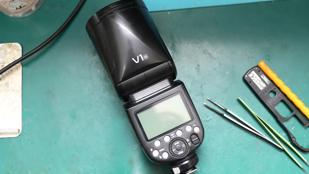 Фотограф достал свою Godox V1 для репортажной съемки — и вместо вспышки на дисплее загорелась ошибка E5. Эта неинформативная надпись знакома многим владельцам: вспышка не заряжается, не пыхает, иногда мигает красным. Мы приняли Godox V1 на диагностику в сервис Fotoblick и за пару часов нашли две скрытые поломки, которые могли привести к повторному отказу. Разбираем корпус — снимаем нижнюю крышку, отстегиваем голову вспышки, отключаем шлейфы питания и синхронизации. Доступ к основной плате открыт. Прозваниваем мультиметром цепи питания. Находим транзистор (обычно MOSFET типа IRF или аналог) в полном обрыве — сопротивление 11 Ом вместо единиц. Через него идет высоковольтное питание (300-350В) на основной конденсатор. Выпаиваем дефектный элемент, ставим новый. Это устраняет ошибку E5, но без доработки поломка вернется. Транзистор не горит сам по себе — ищем причину перегрузки. Проверяем электролитические конденсаторы на вздутие, диоды на пробой, резисторы. Все в норме. Переходим к механик