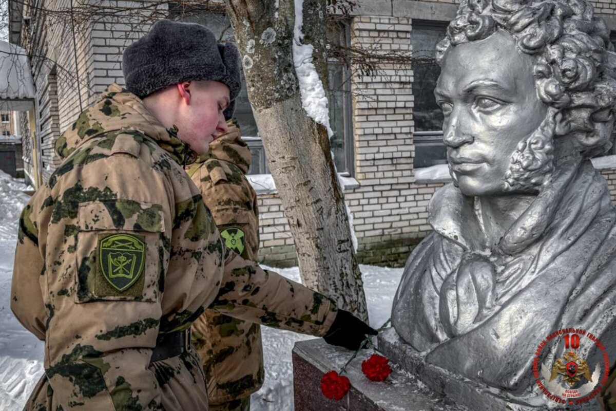 Пушкина возложили цветы к его памятнику, установленному в воинской части. 📚 Также в библиотеке Центра для росгвардейцев прошел тематический вечер «Читаем пушкинские строки» из знаменитых произведений поэта, где в исполнении солдат прозвучали их любимые стихотворения.