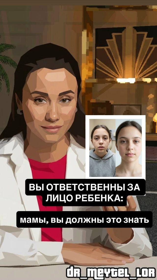 ВЫ ОТВЕТСТВЕННЫ ЗА ЛИЦО РЕБЕНКА: мамы, вы должны это знать Если ребёнок: — постоянно дышит ртом — спит с открытым ртом, храпит — часто болеет — говорит «в нос» — быстро устаёт — плохо концентрируется — у него приоткрыт рот даже днём ❌Это не «привычка»❌ Это почти всегда признак хронической носовой обструкции. Чаще всего — из-за увеличенных аденоидов. 👇Что происходит дальше, если ничего не делать. Формируется так называемое аденоидное лицо: ▪️ удлинение нижней трети лица ▪️ узкая верхняя челюсть ▪️ неправильный прикус ▪️ скученность зубов ▪️ слабый подбородок ▪️ постоянно приоткрытый рот Но внешность — лишь вершина айсберга. ⚠️Настоящие последствия глубже: — хроническая гипоксия мозга — снижение внимания и памяти — задержка речевого развития — частые отиты и снижение слуха — постоянные ОРВИ — формирование неправильного прикуса (привет, брекеты!)) — нарушение сна → истощение нервной системы ❓ПОЧЕМУ ТАК ПРОИСХОДИТ Потому что без эндоскопии аденоиды не видно. Ни фонариком. Ни «на глаз». Ни