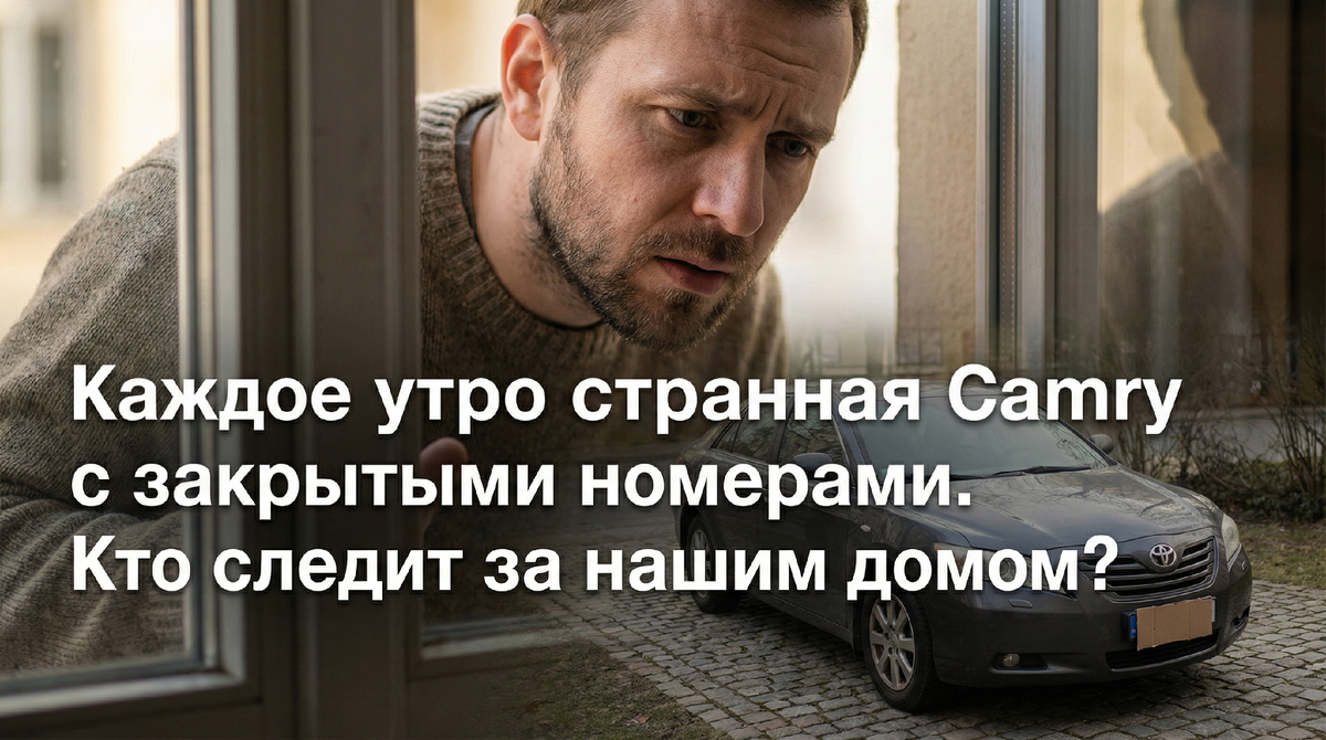 Машина появилась в понедельник. Серая Тойота Камри, не новая — лет семь-восемь. Стояла ровно напротив нашего подъезда, на гостевой парковке. Номера заклеены скотчем — и передний, и задний.