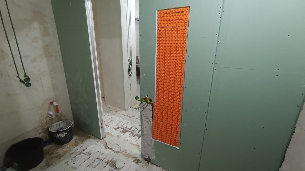 - Минусы: Дороже кабеля. Сложно подгонять под архитектурные элементы (ниши, розетки) — приходится вырезать сетку и работать с кабелем вручную.