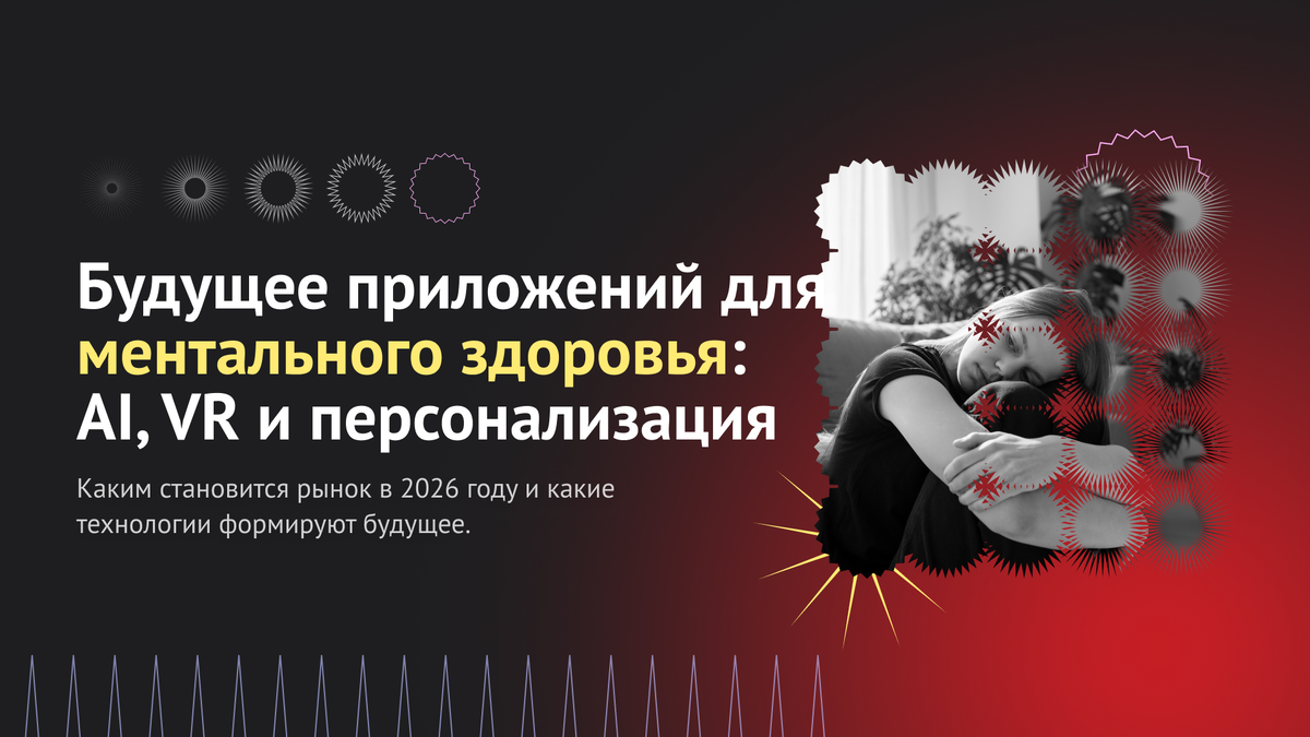 Приложения для ментального здоровья давно перестали быть нишевой историей для тех, кто медитирует. В 2026 году это полноценные цифровые продукты, которые помогают людям справляться со стрессом, выгоранием, тревогой. Ранее мы уже разбирали, как вообще подойти к созданию приложения для ментального здоровья: какие функции нужны, с чего начинать, какие решения работают, а какие — нет. Эта статья пригодится, если вы только продумываете идею. А в этой статье разберем, каким становится рынок mental health-приложений в 2026 году и какие технологии действительно формируют будущее. В 2026 году искусственный интеллект в mental health — это уже не эксперимент, а базовая часть продукта. Приложения учатся анализировать целый набор данных: настроение, сон, активность, частоту использования, реакции на контент, ответы в дневнике эмоций. За счет этого ИИ может не просто показать статистику, а замечать паттерны. Например, что тревожность растет по понедельникам, после определенных рабочих созвонов или п